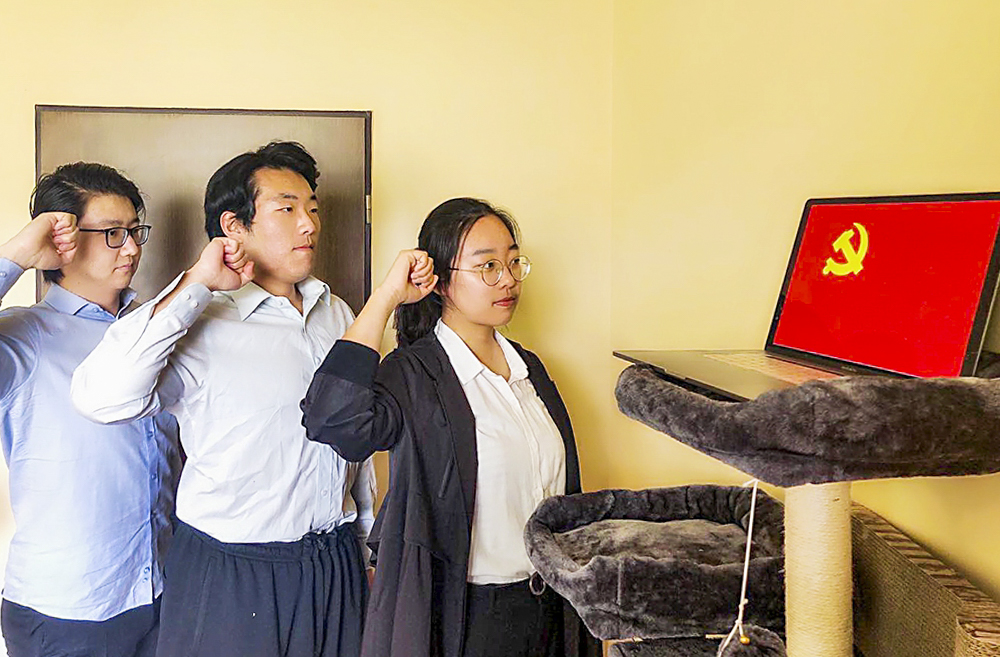 德国校区工程学院学生在德国面对党旗庄严宣誓。